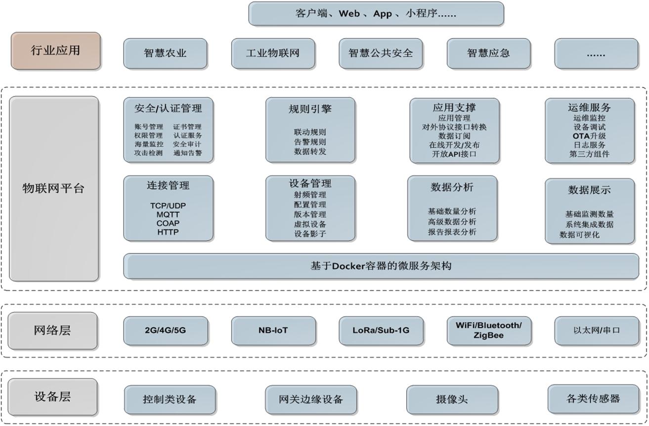 支持2G/4G/5G,NB-IoT,LoRa,以太/串口,sub-1G,ZigBee/蓝牙/WiFi等多种接入形式和MQTT、COAP、HTTP、TCP/UDP等多种通讯协议